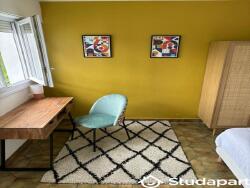 Chaque chambre fait entre, offre tout le confort nécessaire grâce à son lit double, son bureau, sa chaise et son placard de rangements.