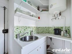 ...Au 6ème et dernier étage d'un immeuble haussmannien, une chambre avec kitchenette fonctionnelle &...