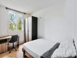 La chambre est équipée d'un lit double, d'une table de chevet, d'une armoire, et d'un bureau avec chaise. (photos des différentes chambres non contractuelles) La copropriété est sécurisée, et dispose d'un espace commun arboré.