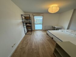 Disponible de suite: 1 chambre confortable de 10,50m², lit double de 140x200, bureau et penderie.