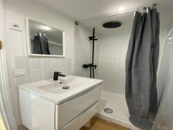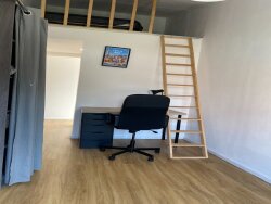-une chambre de 14 m² composée d'un espace nuit, un espace travail et d'une salle de douche avec privatif au prix de 450€ cc