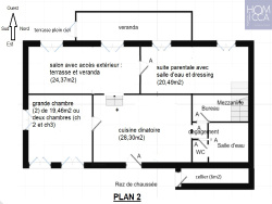 Champagne au mont d'Or, A proximité immédiate du centre, dans un environnement pavillonnaire, en retrait total de la rue, à l'abri des regards, je vous invite à découvrir cette maison de 112m2 + une véranda de 19m2 sur un beau terrain arboré et piscinable de 1547m2. Atypique! Elle comprend un espace jour de 31m2 avec une cuisine entièrement meublée et équipée neuve ouverte sur le séjour exposé Est, un salon indépendant de 19m2 (possibilité de réunir les espaces pour avoir une belle pièce à vivre de 50m2). Ce séjour peut éventuellement devenir la 3ème chambre. Un bel espace nuit séparé agrémente ce bien et comprend un grand dégagement avec accès à une véranda de 19m2 et une terrasse plein ciel de 10m2, une chambre de 14,6m2 et une grande chambre pouvant devenir une belle suite parentale de 20m2 avec une salle d'eau (à créer) et une buanderie. Un bureau de 7.5m2 avec sa mezzanine, une salle d'eau neuve et un wc séparé complétent l'ensemble. Un autre agencement est possible : la cuisine reste en l'état avec ses 19m2 et communique par l'escalier avec une grande pièce de vie donnant désormais sur la terrasse et la véranda. C'est la réunion de la chambre 1 et de la pièce de circulation. Le salon actuel devient une grande chambre (chambre 3) de 19m2 ou deux chambres, le bureau reste en l'état et on crée toujours une suite parentale avec salle d'eau, dressing. La projection de cette configuration correspond au plan numéro 2 En annexes, il y a un grand cellier de 6m2 attenant et deux abris de jardin dont l'un de 15m2 avec électricité pouvant servir d'atelier, de remise. La maison est au calme absolu et lumineuse et sans aucun vis-à-vis. Chauffage individuel au gaz, chaudière de 2023. Elle est implantée sur une belle parcelle de terrain de 1547m2 avec de magnifiques arbres, des massifs de fleurs. Elle est à proximité des bus, des commerces et du centre du village de Champagne au Mont d'Or et des accès autoroutiers. Son prix est de 399.000EUR. Pour visiter et vous accompagner dans votre projet, contactez Christophe AVON, directeur d'agence au 06.82.16.24.75. Agence Homicca www.homicca.fr Les informations sur les risques auxquels est exposé ce bien sont disponibles sur le site Géorisques : www.georisques.gouv.fr