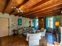 La demeure, restaurée dans les années 80 avec l'aide d'un architecte, a gardé tout son caractère et son charme traditionnel d'antan... les cheminées en pierre de taille, les tomettes de Cadeuil, les poutres apparentes, les planchers en bois, les mûrs en moellons, les volumes et la hauteur sous plafond se marient parfaitement avec les grandes ouvertures qui ont été crée pour apporter plus de lumière et une véritable harmonie entre intérieur et extérieur...