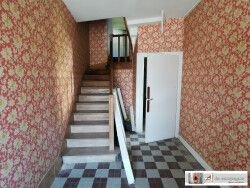 Celle-ci propose, au rez-de-chaussée, d'une entrée, à l'étage, une cuisine, trois pièces et une salle d'eau avec WC. Cette partie nécessite des travaux de rénovations (chauffage, menuiseries, mise au goût du jour etc). La cage d'escalier présente des dégâts des eaux suite à une fuite, aujourd'hui réparée. L'escalier devra lui être rénové ou remplacé.