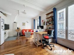 Au pied de la Butte Montmartre, au sein d'un immeuble du début du XXème siècle avec gardien, Eustache a le plaisir de vous présenter ce charmant studio/2 pièces, composé comme suit: Une entrée avec rangements (possibilité bureau), un salon avec cuisine ouverte aménagée et équipée, un coin chambre, une salle d'eau ainsi que des WC indépendants. Possibilité de faire une chambre séparée. Une cave complète ce bien.