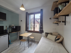 C'est au deuxième étage sans ascenseur d'une copropriété en vieille ville à Annecy, que se situe ce charmant studio de 22 m² Carrez environ (32 m² au sol environ). Ce petit cocon citadin séduira les amoureux de la vieille ville et les investisseurs locatifs par son emplacement. Au coeur de la vie culturelle et commerciale, cet appartement se trouve en plein centre historique de la ville dans une bâtisse du XVIIème siècle. La pièce de vie s'organise en deux espaces distincts, une cuisine ouverte et aménagée et un petit espace salon/salle à manger. Bien pensé, ce studio très chaleureux dispose de deux espaces nuit dont un en mezzanine. Une salle d'eau avec douche, vasque et rangements complète l'appartement. Les matériaux contemporains et anciens, qui se mélangent d'une façon très harmonieuse, font de ce bien un petit lieu unique : mur de pierre, poutres apparentes, et parquet massif en sont les pièces maîtresses. Les amoureux de la vieille ville et les investisseurs seront séduits par le côté cocooning de ce bien. Chauffage électrique. Taxe Foncière : 332 Euros. Bien soumis au régime de la copropriété, 15 lots d'habitation. Charges annuelles : 340 Euros Au coeur de la vielle ville : parking public, commerces et transports à proximité, proche du Lac, accès facile depuis la gare CLASSE ENERGIE : E / CLASSE CLIMAT : B Montant moyen estimé des dépenses annuelles d'énergie pour un usage standard, établi à partir des prix de l'énergie de l'année 2021 : entre 542 et 734 Euros. Les informations sur les risques auxquels ce bien est exposé sont disponibles sur le site Géorisques pour les zones concernées : www.georisques.gouv.fr. Contact : Laurence 06.61.02.84.42 Copropriété de 25 lots - dont 15 lots habitation. Charges annuelles : 340 euros. Laurence ROMERO (EI) Agent Commercial - Numéro RSAC : 841 857 295 - Annecy.