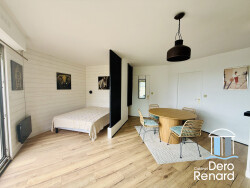 Au sein d'une résidence sécurisée, nous vous proposons à la location ce charmant studio de 33 m², entièrement meublé et parfaitement équipée, bénéficiant d'une jolie vue sur la mer. Récemment rénové avec soin et matériaux de qualité, l'appartement est judicieusement agencé. Il se compose d'une spacieuse entrée avec dressing et espace buanderie équipé d'un lave-linge, d'une salle de bains avec WC, ainsi que d'une cuisine moderne aménagée et équipée (four, plaques de cuisson, hotte lave-vaisselle, micro-ondes et réfrigérateur). La cuisine dispose d'un bar s'ouvre sur un vaste séjour lumineux, agrémenté d'un coin nuit, l'ensemble prolongé par une belle terrasse de 16 m2 exposée sud/ouest, idéale pour profiter de la jolie vue sur la mer. Situation privilégiée, à quelques pas des commerces et de la plage.