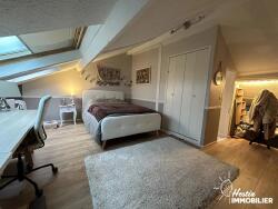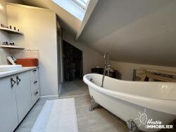 À l'étage, vous trouverez une grande chambre avec dressing, ainsi qu'une salle de bain spacieuse équipée d'une douche et d'une baignoire.