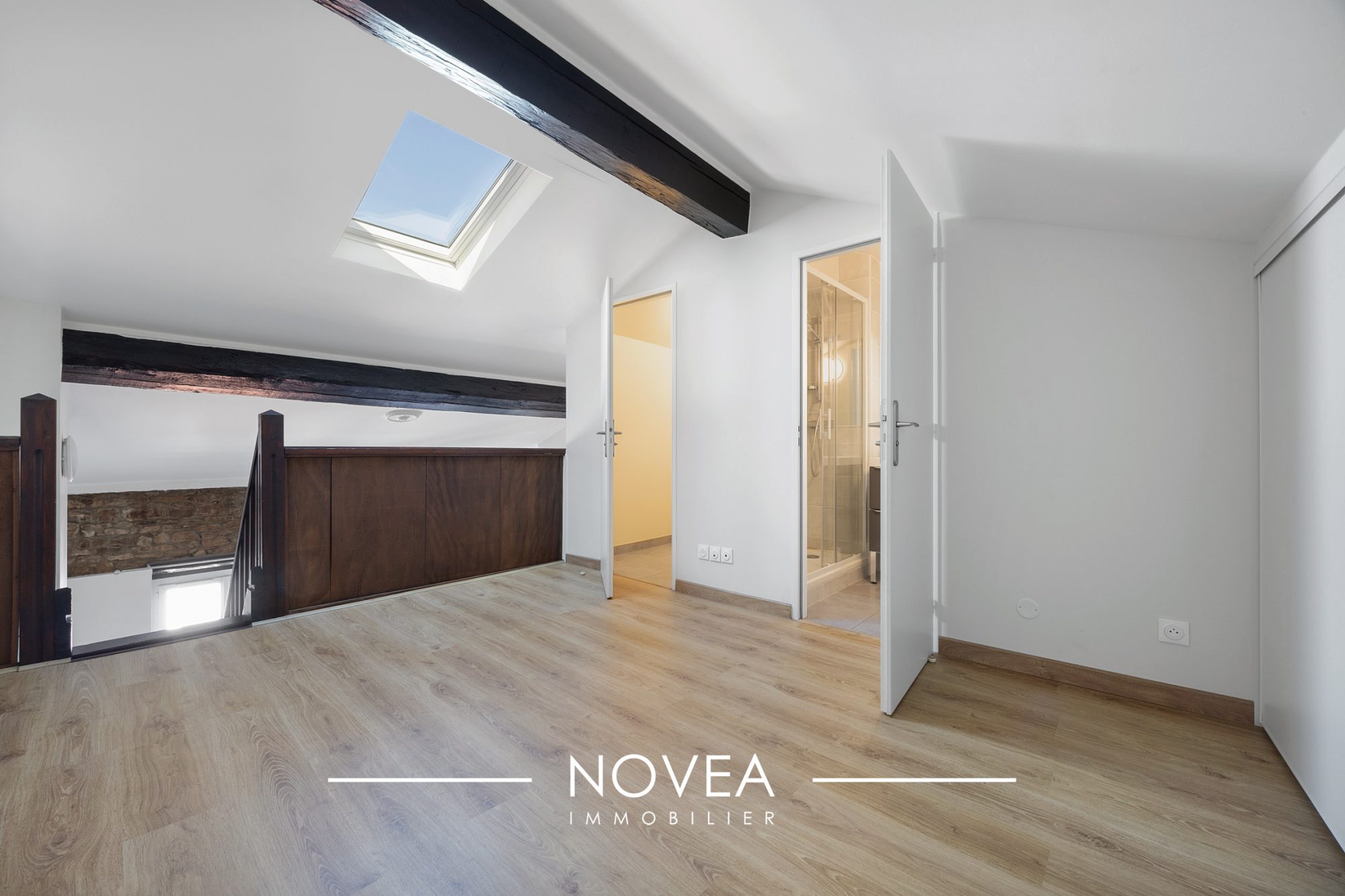 La chambre, profite d'une mezzanine astucieusement aménagée, parfaite pour un bureau ou un espace intime supplémentaire. Salle d'eau contemporaine et toilettes complètent ce bien unique.