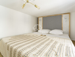 La chambre, profite d'une mezzanine astucieusement aménagée, parfaite pour un bureau ou un espace intime supplémentaire. Salle d'eau contemporaine et toilettes complètent ce bien unique.