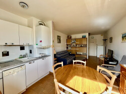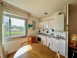 Au premier étage d'une résidence sécurisée, il bénéficie d'une vue dégagée et d'une belle luminosité. L'appartement se compose d'une chambre avec placards intégrés, d'un séjour avec cuisine ouverte, ainsi que d'un espace optimisé avec lits superposés, idéal pour accueillir famille et amis.