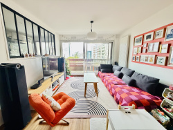 En plein centre-ville de Charenton-le-Pont, à 1 minute à pied du métro ligne 8 Charenton Écoles, découvrez ce bel appartement T3 de 76,05 m2 (loi Carrez), situé au 4ème étage avec ascenseur d'une copropriété bien entretenue de 9 étages construite en 1983. Exposé Sud-Ouest, il bénéficie d'une belle luminosité et d'un balcon agréable. Il se compose d'une entrée avec placard, d'un séjour double lumineux, d'une cuisine équipée semi-ouverte, de deux chambres dont une avec dressing, d'un couloir avec rangements, d'un cellier/buanderie, d'une salle d'eau et d'un WC indépendant. Une place de parking, une cave en sous-sol fermée et sécurisée, ainsi qu'un cellier sur le palier, complètent ce bien. Commerces, écoles, crèches et services au pied de l'immeuble, accès rapide à Paris par les axes routiers et proximité des bords de Marne. - Charges mensuelles : env. 166 EUR- Taxe foncière : 1 836 EUR- Chauffage individuel au gaz par chaudière à condensation récente (2023) Une opportunité rare sur le secteur, idéale pour une résidence principale familiale ou un investissement patrimonial de qualité. À visiter sans plus attendre.