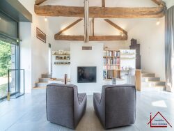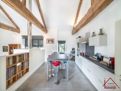 Nichée au coeur du pittoresque village de Peyrat-le-Château, cette ancienne grange du XVIIe siècle rénovée par architecte avec goût conjugue authenticité et confort moderne.Située face au magnifique étang, elle offre un cadre de vie paisible et verdoyant, idéal pour les amoureux de la nature. Des volumes généreux et lumineux Pièce de vie de 95 m², comprenant :Un salon spacieux de 60 m², baigné de lumière Une cuisine ouverte de 35 m², en estrade, apportant caractère et originalité