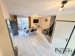 Située dans une résidence calme et agréable, cette maison de 82m2 offre un cadre de vie confortable et fonctionnel, idéal pour une famille ou un premier achat. oAu rez-de-chaussée oCuisine équipée de 10m2 oSpacieux séjour lumineux de 35m2,ouvert sur une terrasse et un jardin privatif de 38 m2. oUn cellier de 4m2 oWC indépendants oA L'étage o3 chambres oUne chambre de 10m2 oDeux chambres de 11m2, dont une avec un grand placard intégré oSalle de bain de 4m2 avec baignoire Double vitrage avec moustiquaires Tout-à-l'égout Chauffage électrique basse consommation connecté ( radiateurs récents septembre 2024) Deux places de parking privatives Faibles charges de copropriété 70 mois assainissement inclus Taxe foncière: 1112 Euros Prix: 155 000 Euros (Honoraires charges vendeur inclus Maison bien agencée, lumineuse et prête à accueillir ses nouveaux propriétaires. A visiter sans tarder