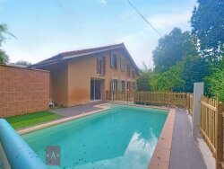 Notre agence vous propose de découvrir cette jolie ferme rénovée sur plus de 200 m2 habitables. Située à deux pas des commerces à pied, vous découvrirez un emplacement arboré et verdoyant sur une parcelle de 1400 m2 environs et une piscine de 8x4m. La maison dispose en rez-de-chaussée d'un salon plein d'authenticité avec sa cheminée ancienne (poêle intégré), d'une cuisine familiale, de 2 chambres, d'un cellier/buanderie, d'un toilette et d'une salle de bain avec douche et baignoire. A l'étage vous trouverez une salle d'eau avec toilette et 3 chambres supplémentaires dont une parentale avec dressing, Le plus: un studio attenant refait a neuf donnant accès sur la piscine. Pour vous approprier ce bien plein de charme, veuillez nous contacter au: 05 63 41 35 88. Mandat n° 4835. Honoraires : 15 000 TTC (3,80 %) inclus charge acquéreur (395 000 hors honoraires)