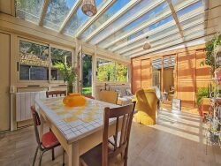 SECTEUR MERVILLE-FRANCEVILLE PLAGE - A 5min des plages de Merville-Franceville-Plage, découvrez cette charmante maison de 75 m² avec vie de plain-pied, parfaite pour une première acquisition en résidence principale, maison de vacances ou investissement locatif. Implantée sur un terrain piscinable de 322m² avec dépendances et baignée de lumière grâce à sa véranda exposée sud-ouest, cette maison se compose d'une pièce de vie donnant sur un jardin arboré, une cuisine aménagée & équipée avec cheminée bois, un salon séjour convivial avec nombreux rangements, une salle d'eau-W.C, deux chambres (dont une à l'étage de 12.15 m² avec rangements et W.C. privatif). Un cadre de vie calme et verdoyant, à seulement 10 minutes à vélo de la mer, proche des commerces, boulangeries et restaurants, à 25 minutes de Caen et 35min de Deauville. Pas de travaux à prévoir. Rare opportunité à saisir !