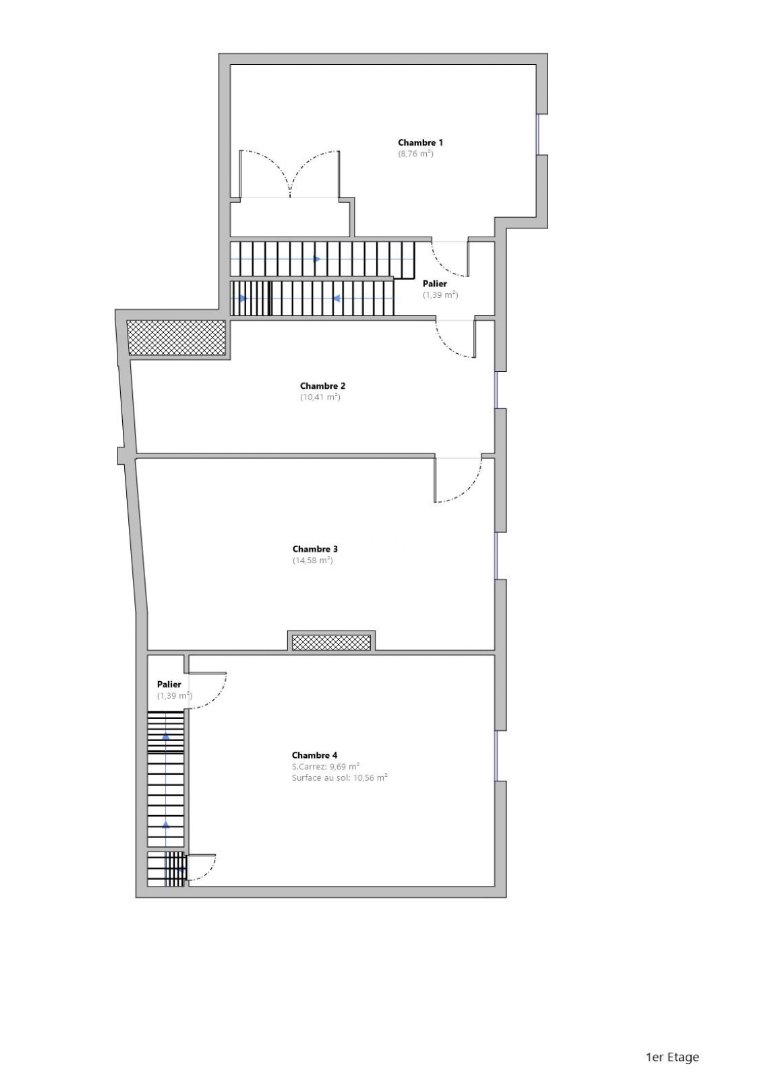 Au premier étage : - un dégagement assez spacieux pour installer un bureau - une chambre et sa cheminée décorative, un placard - une autre grande chambre, - salle d'eau et toilettes Au deuxième étage, des combles aménageables donc de 70 m² au sol et un plancher en OSB, L'isolation en laine de verre (30 cm) assure déjà un bon confort thermique,