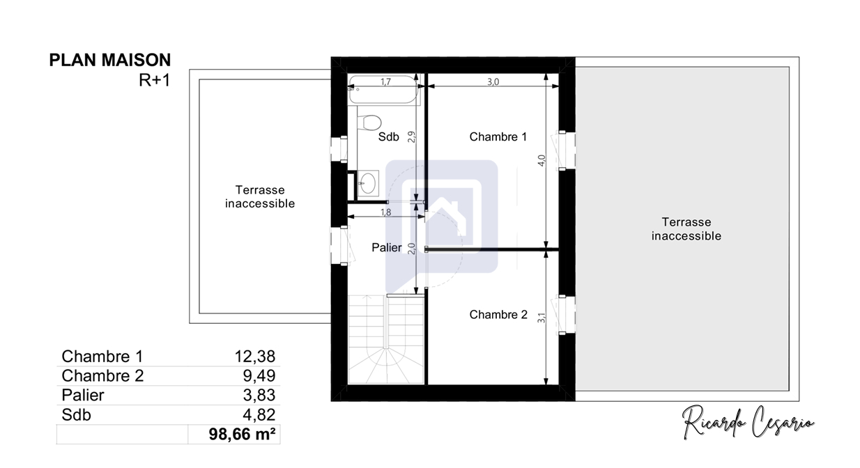 La maison se compose d'un salon lumineux, d'une cuisine fonctionnelle, et de deux chambres confortables.