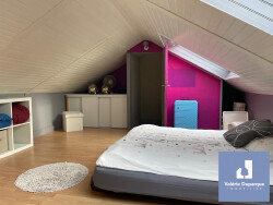 D'environ 106 m² habitables, cette jolie maison bénéficie d'une pièce de vie agrandie de plus de 50m², Salon et salle à manger baignés de lumière avec baie vitrée donnant sur la terrasse et le jardin. La cuisine ouverte a son coin repas et est entièrement équipée (meubles, plaques, four, lave-vaisselle, réfrigérateur) 4 chambres parquetées (dont 3 au premier étage et 1 aménagée dans les combles) 2 WC (un indépendant au RDC dans l'entrée et un à l'étage dans la SDB) La salle de bain comprend une grande vasque, une douche et des WC. Vous profiterez du jardin sans vis-à-vis et ensoleillé sur une jolie terrasse en bois.