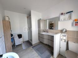 Au 1er étage : une chambre spacieuse avec son placard mural, ainsi qu'une grande salle d'eau dans laquelle vous trouverez une douche, un lavabo, un WC.
