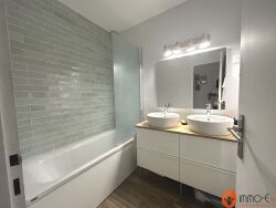 - Elle est composée d'un salon séjour traversant baigné de lumière avec poêle à bois, - Une cuisine équipée toute neuve - Trois chambres avec placards - Une salle de bains - Un WC - Un garage attenant