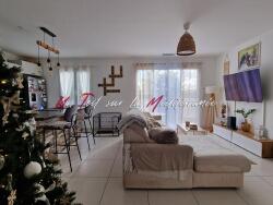 Maison de plain pied de 90m2, construite en 2019 (sous décennale) comprenant 4 pièces, 3 chambres dont une avec salle de douche, wc, salle de bain.