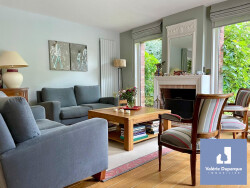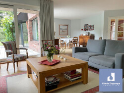 Au RDC: Vaste entrée cathédrale avec espace vestiaire, WC suspendus avec lave-mains Pièce de vie parquetée de plus de 50 m² baignée de lumière, grandes baies vitrées sur la terrasse et le jardin, cheminée feu de bois, Cuisine très fonctionnelle semi-ouverte sur la salle à manger, entièrement équipée, accès jardin. Bureau parqueté attenant au séjour A l'étage: Grand palier parqueté ouvert sur l'entrée cathédrale 4 chambres très cocooning dont 2 avec placards 1 salle de bains avec baignoire, douche et vasque 1 domaine parental composé d'une 5ème chambre avec dressing ainsi que sa salle de douche privative Buanderie WC indépendants