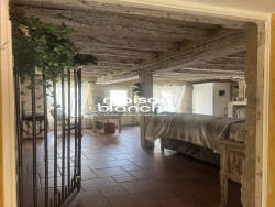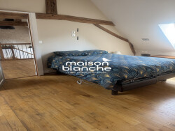 A l'étage, un grand palier mezzanine dessert une grande chambre et une seconde mansardée.