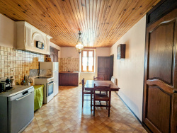 Descriptif du bien Rez-de-chaussée Cave / atelier de 45 m2 avec possibilité d'aménager un garage Maison mitoyenne sur le côté gauche Escalier commun desservant les étages 1er étage Cuisine indépendante de 18 m2 Séjour / salon lumineux de 21,7 m2 WC indépendant 2e étage Deux chambres communicantes de 21,7 m2 et 17,5 m2 3e étage Grenier de 50 m2 avec belle hauteur sous plafond, entièrement aménageable (chambre, bureau, salle de loisirs, etc.) À l'extérieur Jardin clos de 150 m2 situé à environ 50 mètres de la maison, alimenté par une source naturelle, idéal pour la détente ou un potager
