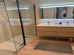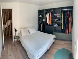 Cette maison comprend deux chambres spacieuses, son bureau et cinq pièces au total, chacune aménagée avec soin pour maximiser espace et confort. La cuisine fonctionnelle et bien équipée est parfaite pour de délicieux repas en famille. La salle de bain moderne, avec sa douche à l'italienne, apporte une touche contemporaine à ce cadre authentique.