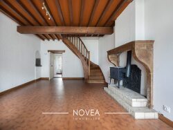 À gauche, la cuisine de 12m2 s'ouvre sur une grande pièce de vie conviviale, de près de 30m2 agrémentée d'une cheminée, et accédant directement sur le jardin. Cette pièce pleine de cachet saura vous séduire par son volume, ses poutres et sa cheminée, conférant à la pièce beaucoup de chaleur. À l'étage, un couloir distribue deux grandes chambres (1 de 25 m2, et une de 14m2), une salle de bain, des toilettes séparées, et une petite mezzanine menant à une troisième chambre sous les toits, idéale pour un bureau ou une salle de jeux, avec une hauteur sous plafond réduite et un petit hublot en guise de fenêtre.