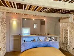 Cette magnifique maison de village, datant de plus de 500 ans, a été entièrement rénovée il y a trois ans, préservant ses éléments d'origine tels que les poutres apparentes et les murs en pierre, tout en offrant le confort moderne.