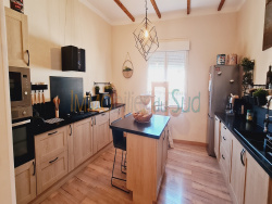 Située à Canaules et Argentière à 5 mn toutes commodités de Lézan, cette charmante maison de village de caractère entièrement rénovée offre des prestations de qualité. sur une superficie habitable de 150 m2 environ, avec 7 pièces au total dont un T2 indépendant entièrement équipé. Sa disposition en L avec vaste terrasse et sa cours intérieure occupant entièrement l'angle en font un bien rare. Contournant la cours intérieure, le rez de chaussée se compose d'un immense garage (58 m2), un charmant préau aménageable en cuisine d'été et d'un appartement indépendant T2 comprenant un séjour avec cuisine équipée (15 m2), une chambre (12 m2) suivi d'une salle d'eau avec WC. A l'étage, une grande terrasse et coursive de 60 m2 environ prolonge les pièces principales. l'espace de jour de 54 m2 très chaleureux comprend une belle et spacieuse cuisine équipée récente (18 m2), et un salon/salle à manger climatisé avec poêle à bois. L'espace de nuit se compose d'une magnifique chambre de 21 m2 avec placard, d'un bureau ou chambre de 10 m2, d'un 2ième salon de 15 m2 et une salle d'eau avec WC. Vous serez séduit(e) par ses nombreux atouts : Grande terrasse ensoleillée exposée plein sud, parfaite pour les repas en extérieur Cour intérieure de 150 m2 environ intimiste avec une piscine hors-sol, idéale pour les journées d'été Garage spacieux de 58 m2, offrant un bel espace de stationnement et de rangement Cuisine entièrement équipée, vendue telle que sur les photos, avec électroménager et réfrigérateur inclus Système d'alarme installé pour une sécurité renforcée et appareils clims, poêle et caméras connectés Maison totalement équipée, prête à vivre, sans gros travaux à prévoir 262000 EUR incluant nos honoraires à la charge du vendeur