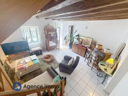 COUP DE COEUR ! Charmante maison de ville édifiée sur une parcelle de 108 m², offrant, un séjour avec poutres et cheminée, cuisine AE indépendante, cellier et wc. A l' étage 2 chambres avec salle de bains avec wc. Jardinet coté sud et nord de la maison.