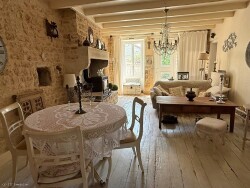 Nichée dans un cadre idyllique et isolé, cette magnifique maison individuelle en pierre, entièrement rénovée, allie charme de l'ancien et confort moderne. Entourée de bois paisibles et de nature, elle constitue un véritable havre de paix à seulement 2,9 km d'un village dynamique offrant une boulangerie, un bureau de poste, un bar/restaurant et une école maternelle.
