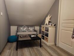 A l'étage : un agréable palier donnant sur 2 grandes chambres dont une avec accès au grenier dans lequel il y a la possibilité de créer une seconde salle de bain.
