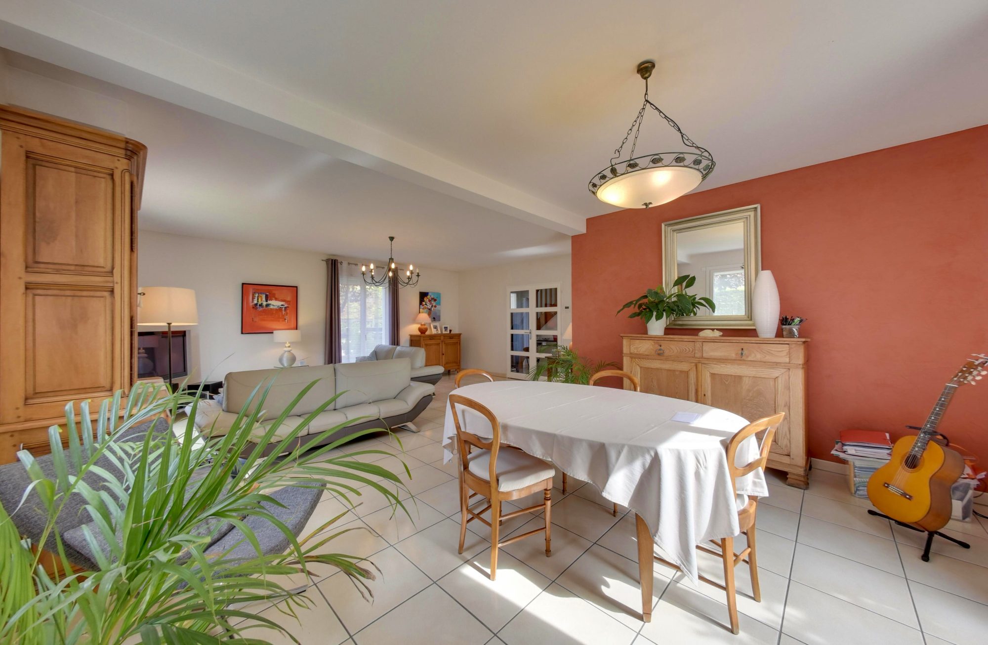 La maison se compose au RDC d'un grand séjour cuisine spacieux de 54 m² baignant de lumière avec un accès direct dans le jardin et une belle cuisine équipée restant pour la vente.