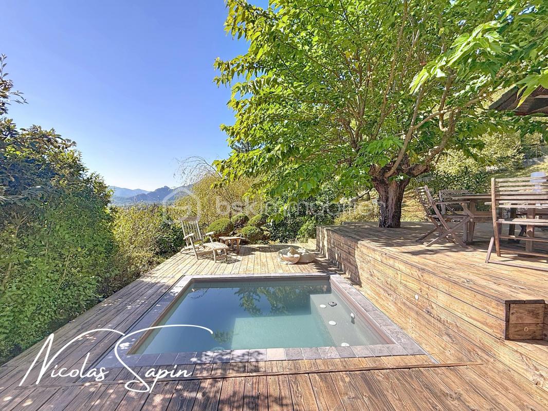 Les +++ de la maison : une belle vue sur les montagnes, un poêle à granulé, des placards de rangement, une chaudière gaz récente changée en 2024, certaines pièces sont équipées d'une clim, du stationnement devant la maison et le liner ainsi que le système de filtration de la piscine changés cet été.