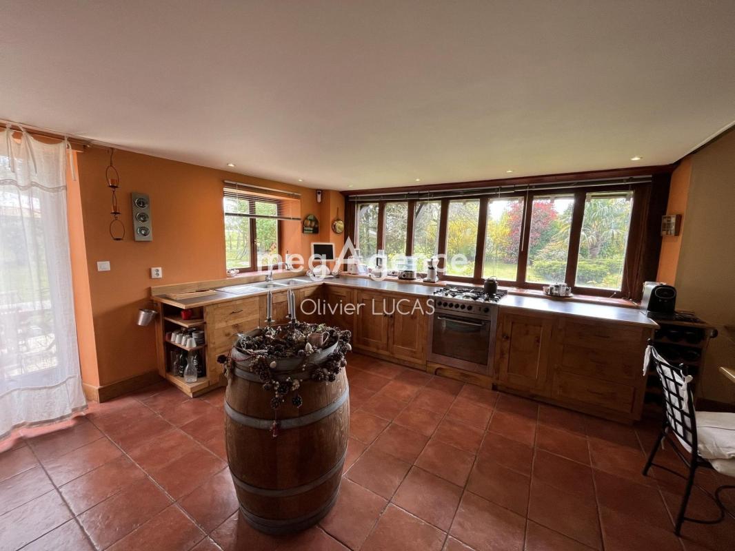La demeure propose 182m² de superficie habitable sur 100m² de sous sol utile. Au rez-de-chaussée, la pièce de vie offre un espace baigné de lumière toute la journée avec accès sur la terrasse de 70m² exposée plein sud. La cuisine aménagée et équipée ouvre sur le séjour. Cet espace chaleureux bénéficie d'une cheminée à foyer fermée pour agrémenter les soirées d'hiver. Toujours au rez-de-chaussée, un couloir dessert deux belles chambres, une salle de douche ainsi que les toilettes indépendants.