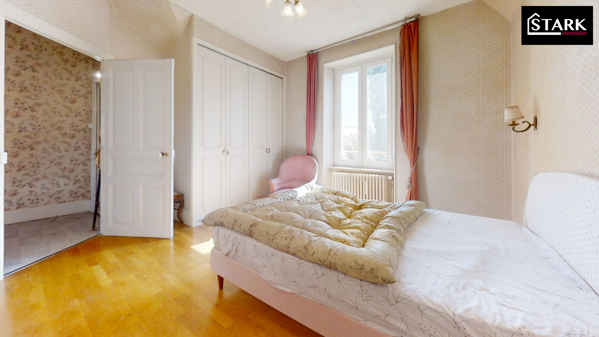 À l'étage, un couloir dessert quatre chambres, dont une en enfilade, idéale pour une chambre d'enfant ou un espace de rangement supplémentaire.Un bureau complète cet étage, offrant un espace calme et fonctionnel.Vous y trouverez également une salle d'eau avec WC.Un accès au grenier aménageable vient compléter cet étage.