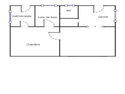 Salon, chambre, cuisine, salle d'eau, WC indépendant et une petite véranda attenante à la chambre.