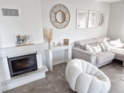 Salon et séjour lumineux avec cheminée