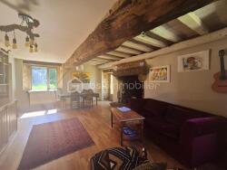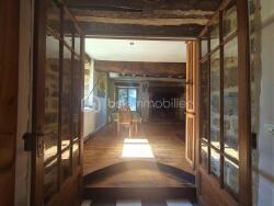 Au détour d'un chemin, à l'abri de toute nuisance, se dévoile cette propriété rare qui rassemble tout ce que l'on peut espérer : une maison ancienne en pierre pleine de charme, un vaste terrain de plus d'un hectare composé de bois et de prairie, un étang, aucun vis-à-vis? et en supplément, une deuxième maison à rénover selon vos envies. La maison principale, datant du XVIIe/XVIIIe siècle, offre 91 m² de caractère. L'entrée avec son poêle à bois annonce une atmosphère chaleureuse. La cuisine, tournée vers le jardin, mène à une pièce de vie lumineuse sur parquet, avec cheminée ancienne et accès direct à la terrasse. À l'étage, trois chambres mansardées avec poutres apparentes, une salle de bain baignée de lumière et un dressing complètent l'espace. La maison bénéficie en plus d'une pompe à chaleur.