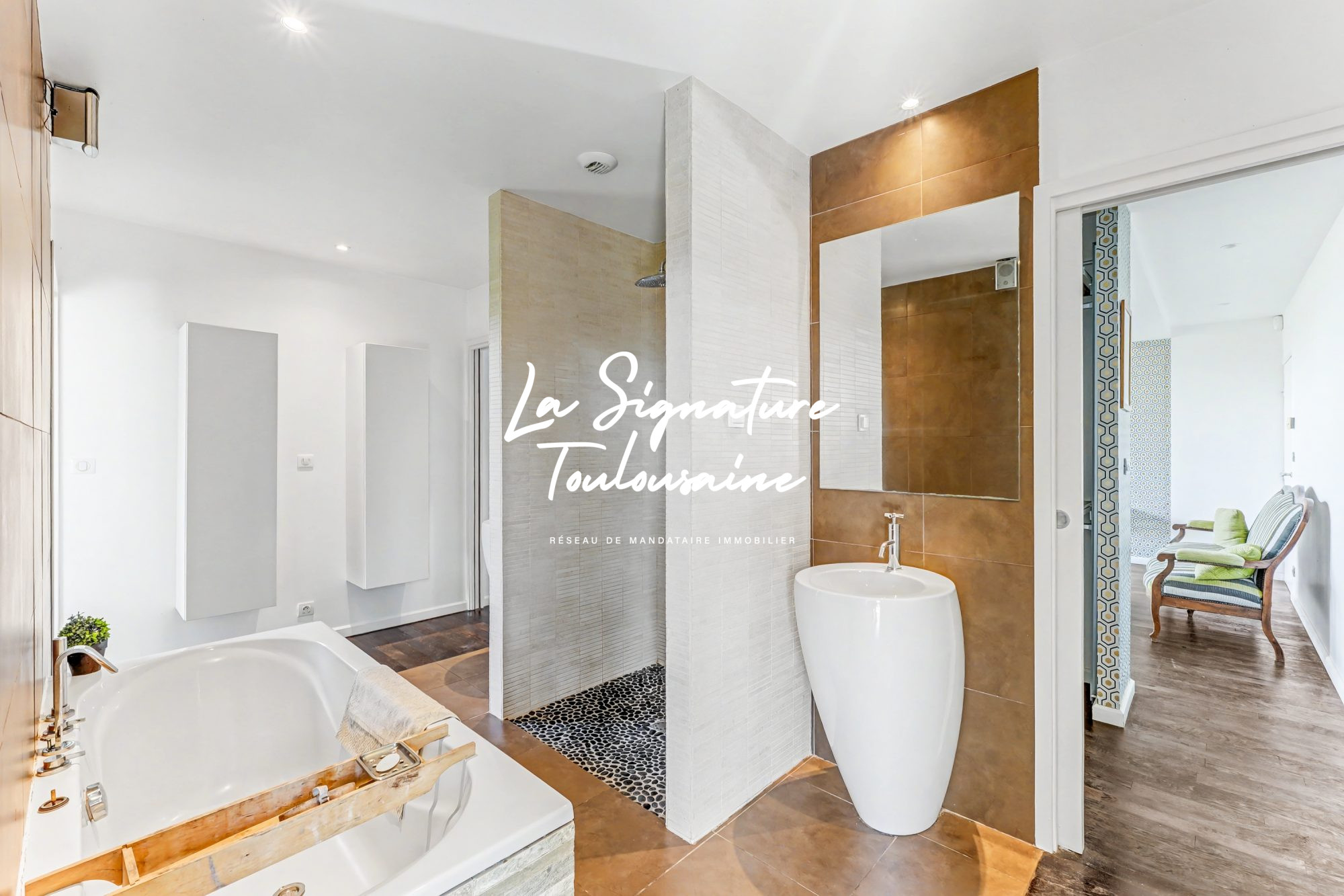 EXCLUSIVITE Secteur Montastruc. Dans un cadre verdoyant, calme et prisé, cette grande maison bourgeoise offre deux niveaux de vie indépendants. Au rez-de-chaussée, l'habitation principale déploie 231m2 de surface dont 90m2 dédiés à l'espace de vie, traversant et lumineux. La cuisine y est ouverte, équipée d'un îlot central et propose un accès direct sur la terrasse dinatoire exposée Est. Les baies portent notre vue sur le jardin arboré et pisciné, agrémenté d'une terrasse couverte, véritable salon d'extérieur à l'ambiance cosy et zen. Le coin nuit propose 4 chambres dont une suite, un bureau, un dressing, une salle de bains et un toilette séparé. Une buanderie complète l'équipement de ce niveau. A l'étage, l'entrée se fait par une terrasse de 50m2 et propose 106m2 de surface à rafraichir. Un espace de vie de 38m2 est largement ouvert sur l'extérieur. Un grand palier distribue en étoile 4 chambres, une salle d'eau, une salle de bains et un toilette séparé. N'hésitez pas à nous contacter pour la découverte de ce bien rare et charmant ! Prix TTC et Honoraires à charge vendeur TTC Agent Commercial VOTRE AGENCE DE BESSIERES - Plus d'informations au 05 61 58 18 67 réf.4814