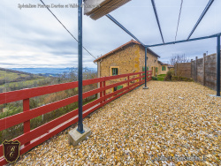 EXCLUSIVITE - SAINTE PAULE - Perchée sur les hauteurs d'un hameau paisible avec vue imprenable, cette authentique bâtisse en pierres rénovée récemment vous séduira par son caractère, ses volumes généreux et son environnement ressourçant. Elevée sur caves, avec garage, ateliers, elle offre un potentiel rare pour les amateurs d'espace et de projets. Cette maison est pensée sur 2 niveaux: le premier niveau permet de recevoir famille, amis ou hôtes en toute autonomie, tout en préservant l'intimité de chacun, 3 chambres spacieuses, salle de bains, wc, salon permettant l'accès indépendant depuis l'extérieur. A l'étage: séjour chaleureux avec cheminée donnant sur la cuisine équipée récemment refaite avec accès à une belle terrasse suspendue avec pergola et vue dégagée, 2 vastes chambres, buanderie, salle d'eau et wc. Implantée sur un terrain de 1550 m2 Plus environ 200 m2 à proximité immédiate, la propriété dispose également d'une yourte, idéale pour un espace bien-être, un hébergement insolite ou un atelier créatif. Ici le calme et la nature sont au rendez vous: belles balades à proximité, Un lieu aux multiples perspectives, prêt à accueillir tous vos projets de vie personnelle (grande famille....) comme professionnelle (chambres d'hôtes, activités bien-être, professions libérales...). Une maison résolument tournée vers l'avenir : panneaux solaires (autonomie énergétique) et présence d'un puits permettant l'arrosage extérieur, ... A voir sans tarder ! Plus de photos ou renseignements sur la commune de SAINTE PAULE (transports, écoles, commerces..) sur notre site du Cabinet Buisantin ou Virginie Falatin 06 75 94 31 39