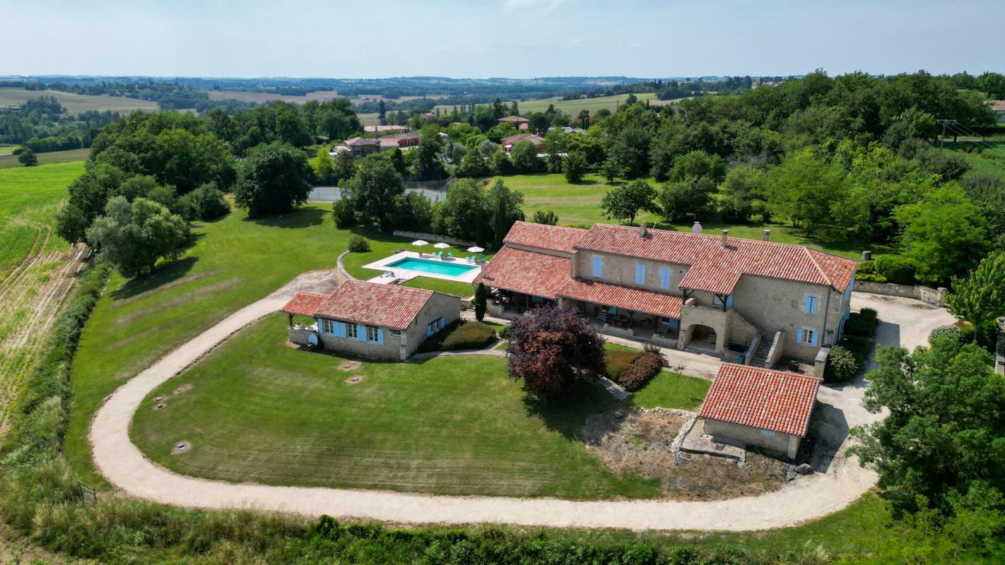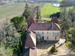 La propriété est construite en forme de U, de sorte que le château se trouve d'un seul côté et qu'il est relié aux dépendances par une grande arrière-cuisine avec une pièce à rénover au-dessus, suivie d'une charmante tour avec un passage voûté menant aux terrasses arrière, à l'allée principale et à l'espace piscine.