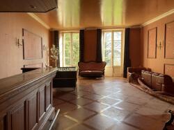 Au-delà de cette pièce, on trouve un autre WC pour les invités, une porte menant aux caves et, à l'extrémité, une énorme seconde cuisine (56 m²) avec cheminée et 4 séries de portes menant à la cour et à la terrasse.