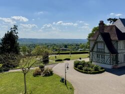 ENTRE DEAUVILLE & PONT L'EVEQUE - Dans un environnement calme & préservé, à 12km de Deauville, élégant domaine édifié sur plus de 24 hectares offrant une vue panoramique sur la vallée de la Touques. Cette propriété se compose d'un Château en briques & pierres et ses deux pavillons en colombages d'environ 430m² offrant de beaux volumes de réceptions dans un style d'époque, un ancien pigeonnier réhabilité en maison d'amis, une maison de gardien type longère normande avec accès indépendant, une grande dépendance de style normand aménagée, un bâtiment normand abritant 4 garages fermés avec grenier aménageable au dessus ainsi qu'un petit bâtiment normand. Le tout en parfait état. Propriété d'exception offrant de multiples possibilités...
