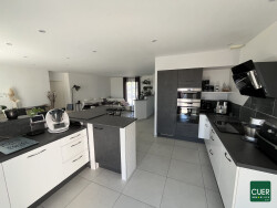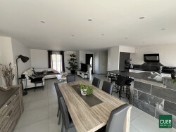 Maison récente de plain-pied, construite en 2015 avec des matériaux de qualité, d'environ 130 m² habitables sur une parcelle de 2 035 m². Elle se compose d'une entrée avec placard et WC, d'une belle pièce de vie avec salon / salle à manger et cuisine ouverte équipée, ainsi que d'un cellier / buanderie attenant. La partie nuit propose 4 chambres, une salle d'eau et un second WC. À l'extérieur, vous profiterez d'une terrasse avec piscine, d'un jardin et d'un espace de stationnement pour plusieurs véhicules. Garage avec mezzanine. Chauffage au sol par pompe à chaleur air/eau. Assainissement autonome par micro-station. A voir !