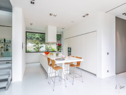 Une répartition des pièces idéales avec une pièce à vivre largement ouverte sur les extérieurs dont la vue plonge sur le jardin paysager et la piscine à débordement. Un double salon traversant avec cheminée, une vaste cuisine, son espace repas, une arrière cuisine, une suite parentale avec dressing et salle d'eau composent le rez -de -chaussée.
